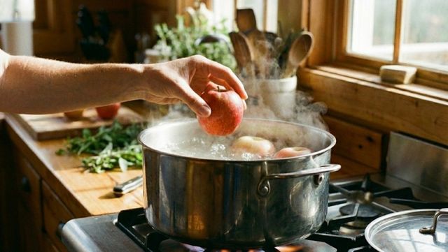 사과를 끓는 물에 담그는 모습 / 기사 내용을 바탕으로 제작한 AI 이미지