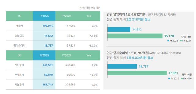 컨테이너선 공급과잉과 미국 보호관세 정책으로 인한 무역 위축이 맞물리면서 전 노선에서 운임이 하락한 탓이다. 상하이컨테이너운임지수(SCFI)는 지난해 평균 1581p로 2024년 평균 2506p 대비 37% 떨어졌다. 특히, 주력 노선인 미주서안(-49%), 미주동안(-42%), 유럽노선(-49%) 운임이 큰 폭으로 하락한 영향이 주효했다.
