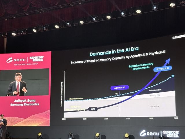 송 사장은 "에이전트 AI를 넘어 피지컬 AI까지 발전할수록 데이터센터 워크로드와 메모리 요구량은 폭발적으로 늘어날 것으로 예상된다"며 "AI 성능 요구가 빠르게 높아지면서 메모리 대역폭이 이를 따라가지 못하는 '메모리 병목'이라는 제약이 있지만 삼성은 이를 해소시킬 기술을 준비 중"이라고 밝혔다.