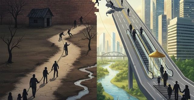 이주가 계층 이동의 핵심 통로로 작용하지만 이동 기회 자체가 부모 경제력에 좌우되면서 지역 격차가 계층 고착으로 이어지는 흐름이다. © 제미나이 생성 이미지