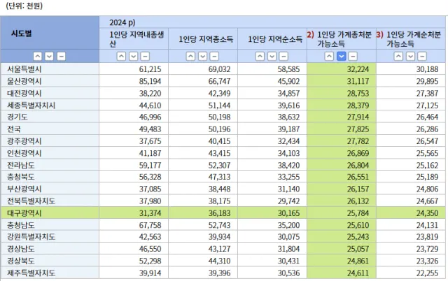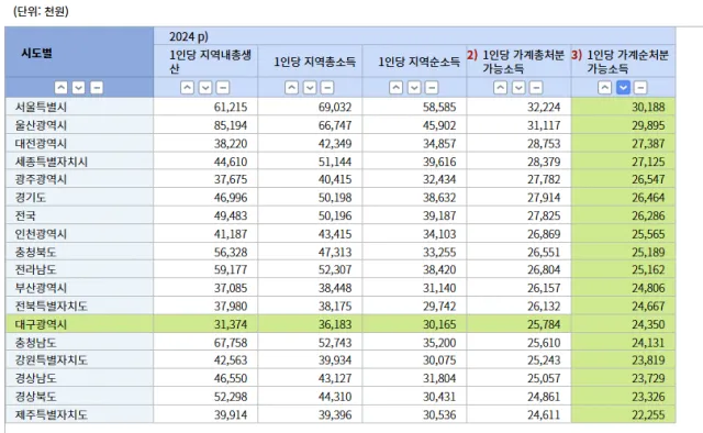 안좋은 지표 쪽으로는 다 광역시 꼴찌 중