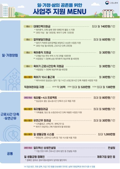 조정숙 고용지원정책관은 “일과 생활의 균형은 일터를 행복한 공간으로 만들고 기업이 성장할 수 있는 기반이 된다.”라며 “정부는 육아기 10시 출근제, 유연근무 등 다양한 일・생활 균형 제도에 대한 장려금, 시스템 지원, 컨설팅과 함께, 제도를 몰라서 못 쓰는 일이 없도록 산업단지 등 중소기업 밀집지역에 적극 안내하는 등 우수 사례를 지속적으로 발굴하고 확산해 나가겠다.”라고 밝혔다.