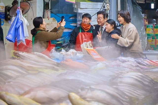 11일 이 대통령은 김혜경 여사와 함께 충주시 무학시장을 방문해 상인들과 인사를 나누고 지역 경기를 직접 살폈다. 취임 이후 충주를 찾은 것은 이번이 처음이다. 시장을 찾은 이 대통령 부부는 상인들에게 새해 덕담을 건네며 장바구니 물가와 매출 상황 등을 묻는 등 현장 분위기를 세심하게 살폈다.