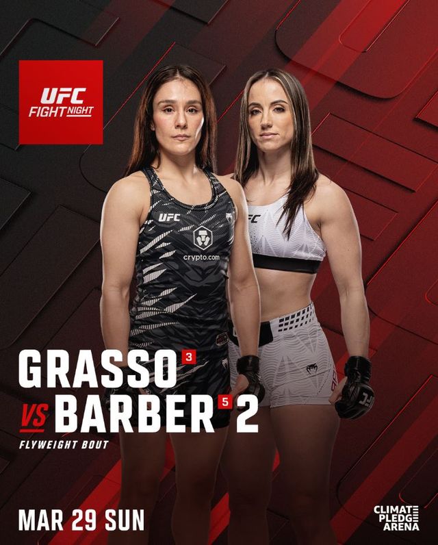 멕시코의 그라소(16승 1무 5패)는 2026년 시즌을 화끈하게 열겠다는 의지를 보이고 있다. UFC 최초의 멕시코 여성 챔피언인 그는 발렌티나 셰브첸코, 비비아니 아라우조와의 경기, 그리고 바버와의 1차전 승리를 통해 강인한 투지와 경기력을 입증했다. 이번 재대결에서도 승리해 또 한 번 타이틀 도전권 확보를 노린다.