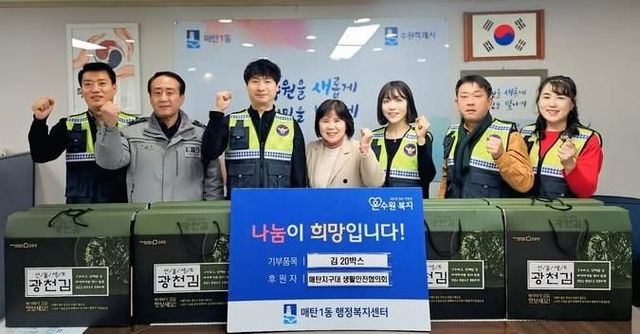 [와이뉴스] 영통구 매탄1동 행정복지센터는 지난 11일 설 명절을 맞이해 매탄지구대 생활안전협의회가 김 선물세트 20개를 후원했다고 밝혔다. 이번 후원 물품은 관내 저소득 취약계층과 돌봄이 필요한 가정에 전달할 예정이다.