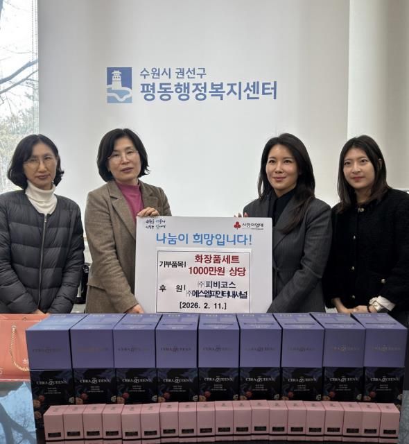 [와이뉴스] 지난 11일, 권선구 평동 행정복지센터는 ㈜피비코스와 ㈜에스엠피인터내셔널이 약 1천만 원 상당의 세럼·크림·선크림 등 화장품세트를 공동 기부했다고 밝혔다.