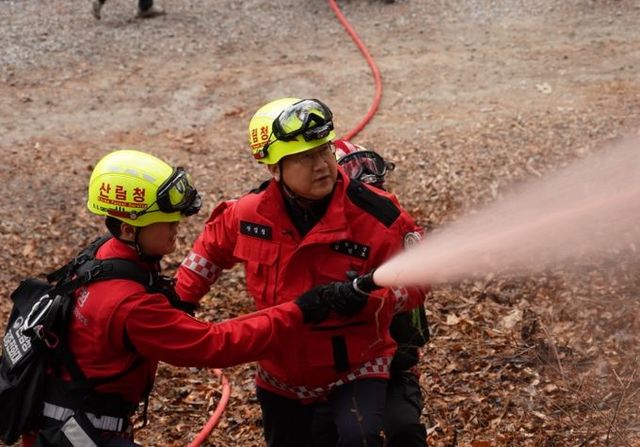 이날 김인호 산림청장은 세계문화유산인 영월 장릉을 대상으로 직접 산불지연제 예방 살포 훈련에 참여하며 산불 현장 대응 능력을 점검했다.