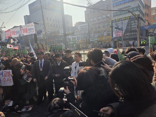 이날 기자회견은 전씨의 지지자들이 100여명가량 몰리면서 다소 혼란한 분위기 속에 진행됐다. 발언을 마친 전씨는 한 손을 들어올리며 ‘윤어게인’이라는 구호를 외친 뒤 자리를 떠났고, 이에 지지자들은 환호하며 경찰에 출석하는 전씨를 따라 횡단보도를 건너기도 했다.