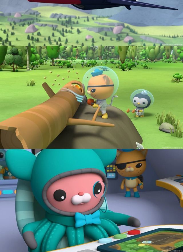 이번 작품에서는 구조 작전에 걸맞게 보호복을 착용한 옥토넛 대원들의 새로운 모습도 만나볼 수 있다. 벌집 구조 작전에 출동한 ‘콰지’와 ‘페이소’는 꿀벌로부터 몸을 보호할 수 있는 특수 보호복을 입고 구조에 나선다. 그 모습이 기존과는 또 다른 귀엽고 신선한 매력을 발산한다. 주로 바닷속 옥토포드에서 생활하는 문어 교수인 ‘잉클링’ 역시 이번 ‘옥토넛 : 육지생물 구조작전’에서는 보호복을 입고 육지로 올라와 구조 작전에 필요한 중요한 조언을 제시한다. 친숙한 캐릭터들의 색다른 변신이 옥토넛 팬들에게 특별한 볼거리를 제공할 예정이다.