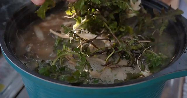 육수는 냉이된장국의 바탕이다. 멸치와 다시마를 기본으로 하되, 무 한 조각을 함께 넣어 끓이면 국물에 자연스러운 단맛이 더해진다. 센 불에서 빠르게 끓이기보다 중불에서 천천히 우려내는 것이 좋다. 육수가 완성되면 건더기는 건져내고 맑은 국물만 사용한다. 이 과정이 국의 뒷맛을 깔끔하게 만든다.