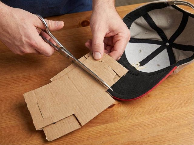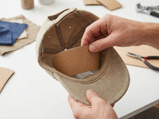 컵홀더를 펼쳐 모자 앞부분 폭에 맞게 잘라 둥글게 말아 챙 바로 위 크라운 안쪽에 넣으면 앞판이 평평하게 유지된다. 기사 내용 토대로 AI툴 활용해 제작한 자료사진.
