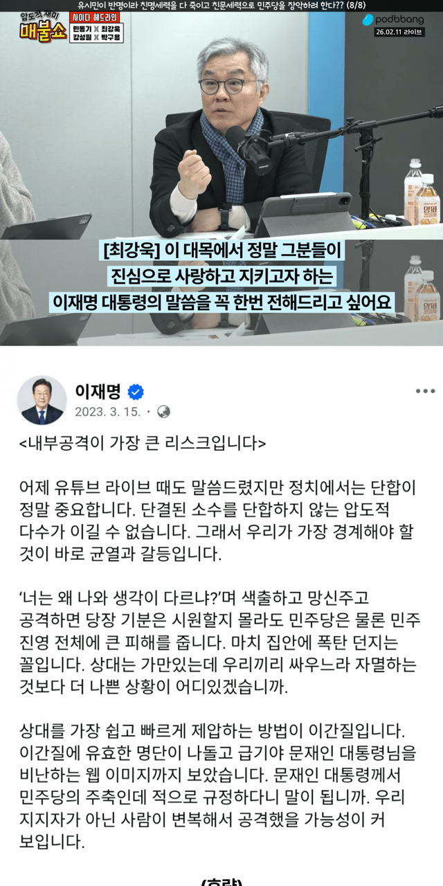 55분 22초부터 민주당 이야기 시작임