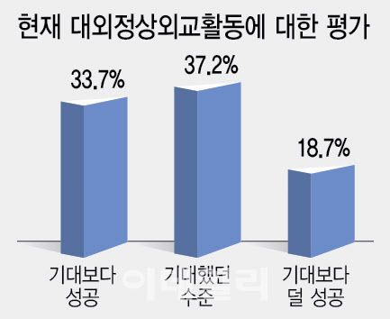 이데일리가 설 연휴를 맞아 여론조사업체 피엠아이(PMI)에 의뢰해 실시한 조사에서 이 대통령의 정상외교 활동 평가는 취임 전 기대와 비교해 긍정 흐름을 보였다. ‘기대했던 것보다 성공적’이라는 응답은 33.7%였다. ‘기대했던 수준과 비슷하다’는 응답은 37.2%였다. 두 응답을 합치면 70%를 넘겼다.