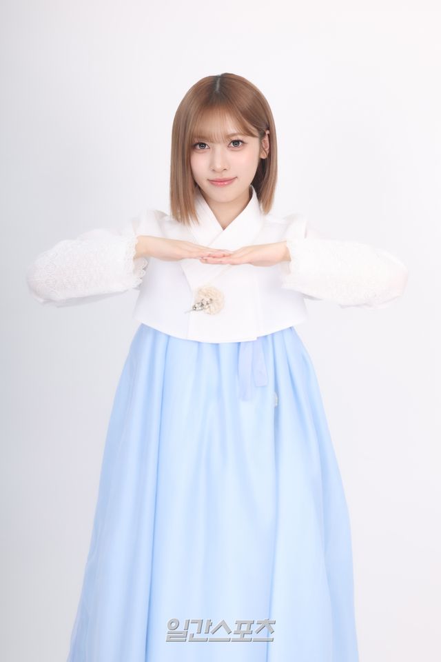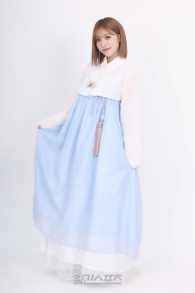 리센느 메이가 서울 순화동 KG타워에서 진행된 일간스포츠 설맞이 인터뷰에 앞서 곱게 차려 입은 한복 차림으로 포즈를 취하고 있다.