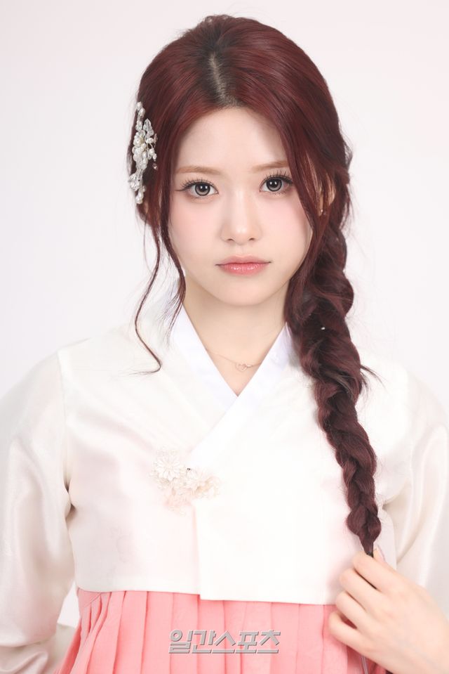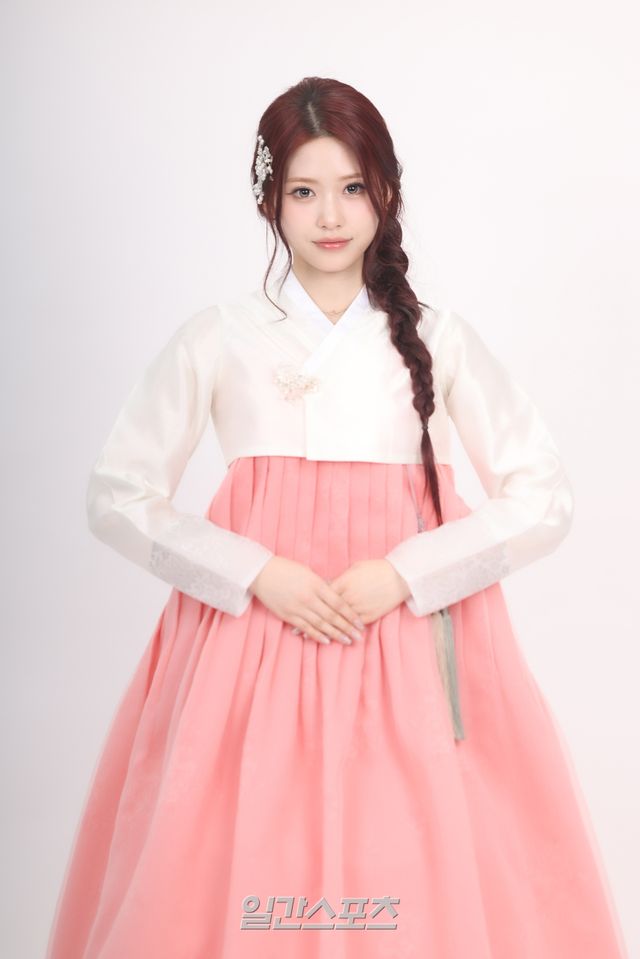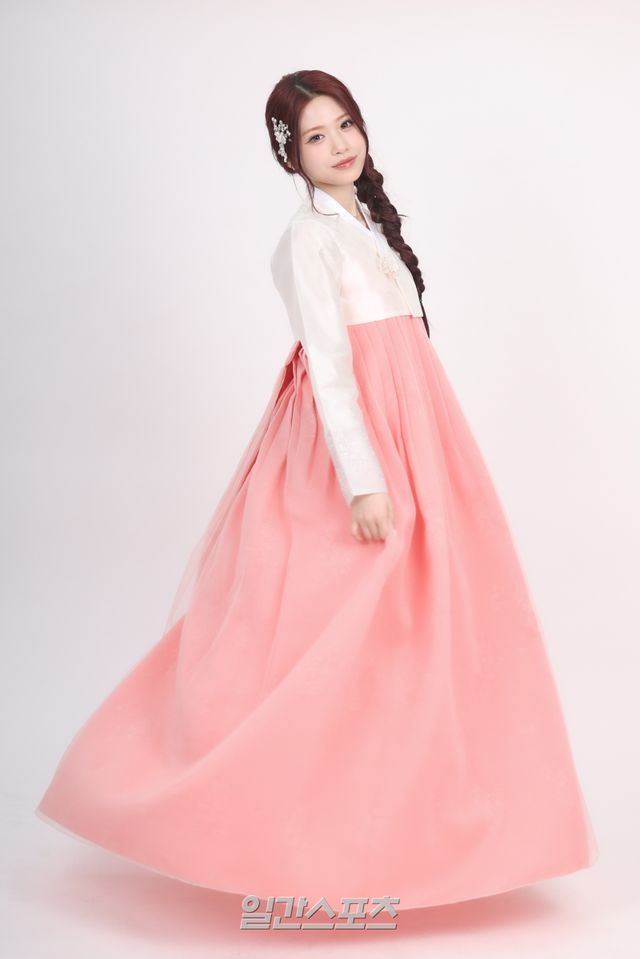 리센느 제나가 서울 순화동 KG타워에서 진행된 일간스포츠 설맞이 인터뷰에 앞서 곱게 차려 입은 한복 차림으로 포즈를 취하고 있다.