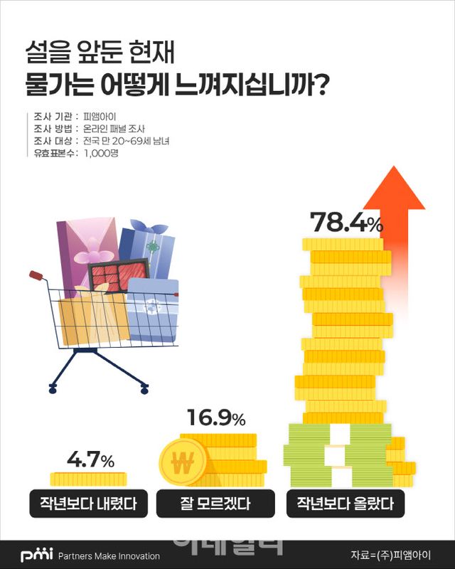 고물가는 명절의 온기마저 위축시키고 있다. 응답자의 78.4%가 “작년보다 물가가 올랐다”고 체감했다. 지출 규모는 지난 추석과 비슷하게 유지(54.3%)하겠다는 답변이 절반을 넘었으나, 세부 내용을 뜯어보면 ‘허리띠 졸라매기’가 역력하다.