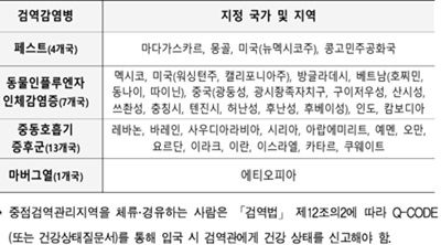 해당 지역을 방문하거나 체류 후 입국하는 경우 Q-CODE(또는 건강상태질문서) 제출을 통해 검역관에게 건강상태를 신고해야 한다.
