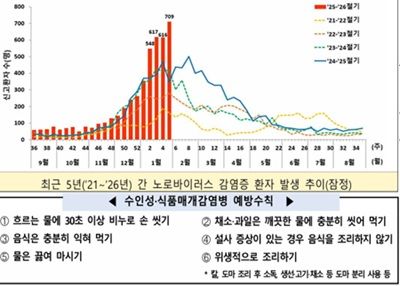 특히 겨울철에 주로 발생하는 노로바이러스감염증 환자가 높은 수준으로 지속 발생하고 있다.