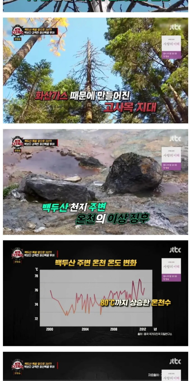 약 100년 주기설을 따르면 백두산은 현재 언제 터져도 이상하지 않다고 한다.