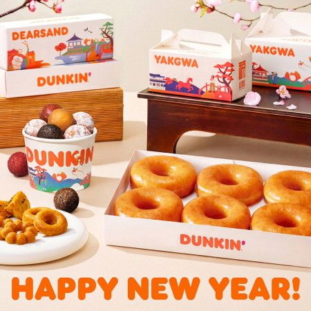 던킨 대표 제품인 글레이즈드(6개입·12개입)와 먼치킨(10개입·20개입)으로 구성된 '설날 도넛팩'도 함께 선보인다. 해당 제품은 14일부터 18일까지 현장 구매 시 최대 22% 할인된 가격에 구매할 수 있다. 준비된 수량이 소진되면 행사는 종료된다.