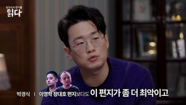 박경식은 “개인적으로 이 편지는 이영학, 장대호의 편지보다 최악”이라며 “악마라는 말이 절로 나왔다”고 말했다.