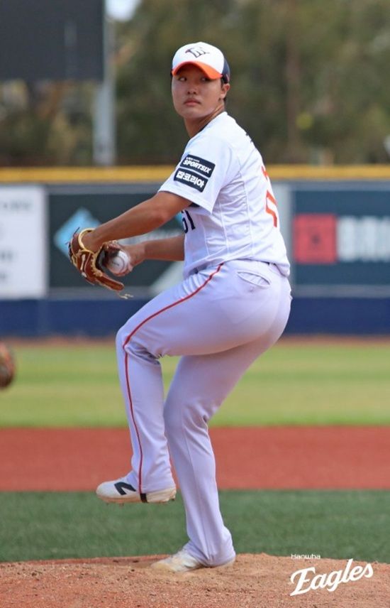 정우주는 13일 호주 멜버른 야구장에서 호주프로야구(ABL) 소속 멜버른 에이시스와 캠프 연습 경기에 선발 등판해 2이닝 3피안타 1탈삼진 2볼넷 1실점을 기록했다.