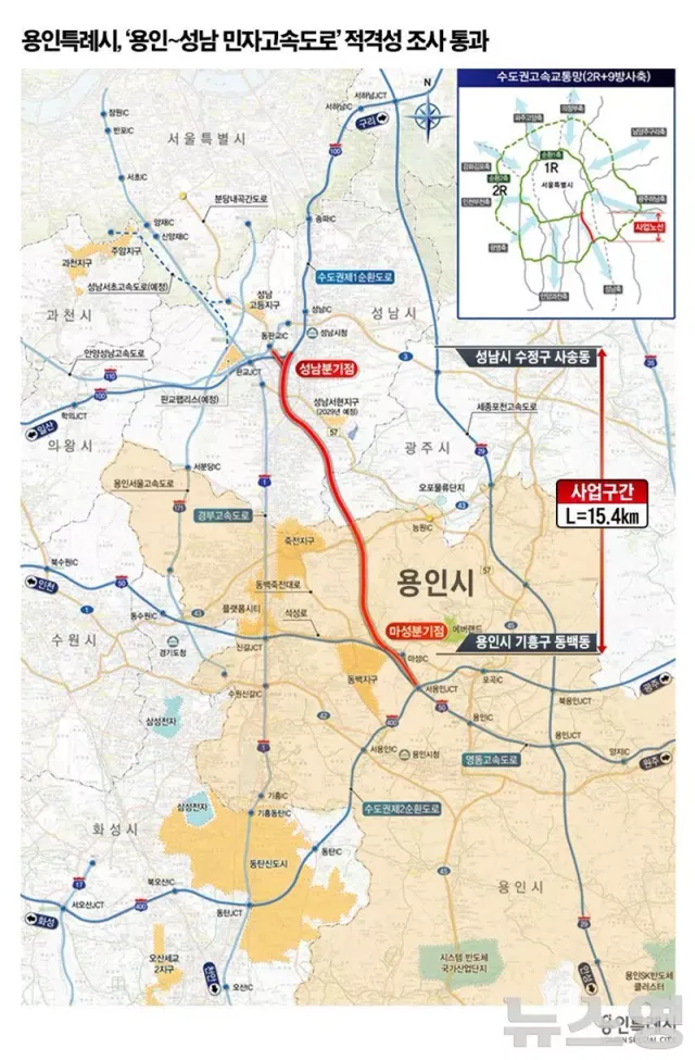 (뉴스영 이현정 기자) 용인특례시가 추진 중인 '용인~성남 고속도로 민간투자사업'이 한국개발연구원(KDI) 적격성 조사를 통과했다.