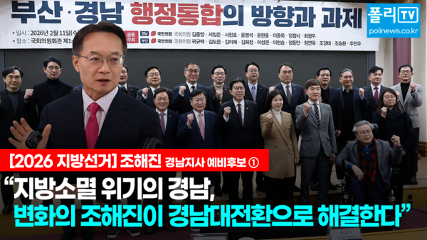 조해진 국민의힘 경남지사 예비후보(이하 후보)는 지난 12일 여의도 폴리뉴스 사무실에서 김능구 대표가 진행한 <2026 지방선거>"경남은 대한민국 제2의 수도권으로 지리적 이점이 충분하다"며 "이를 위해 6.3지방선거 전 부울경 통합을 해야한다"고 주장했다.