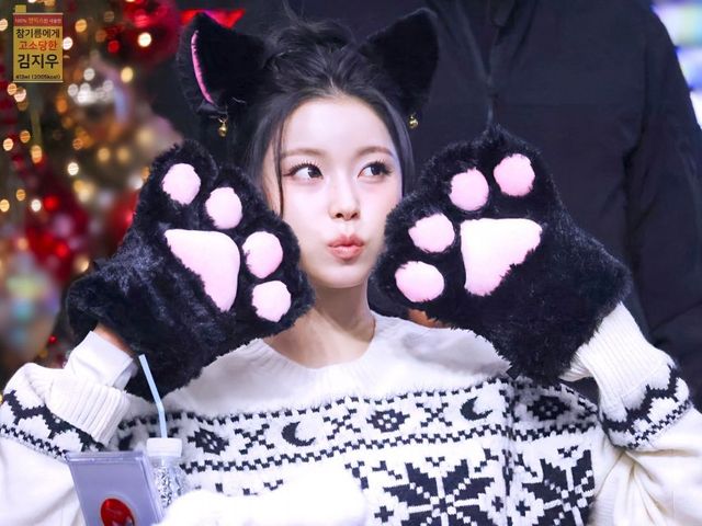 엔믹스(NMIXX)의 규진이 포근한 노르딕 패턴 니트에 앙증맞은 고양이 귀 머리띠와 커다란 발바닥 장갑을 매치하여, 마치 귀여운 캐릭터가 현실로 튀어나온 듯한 독보적인 깜찍함을 선보였습니다. 크리스마스트리가 반짝이는 배경 속에서 양손을 볼 옆에 댄 그녀의 생기 넘치는 표정은 연말의 설렘을 고스란히 전달합니다.