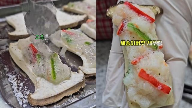 새송이버섯에 새우반죽을 올린 후 쪄낸 모습. / 유튜브 'JJinjubu 찐주부'