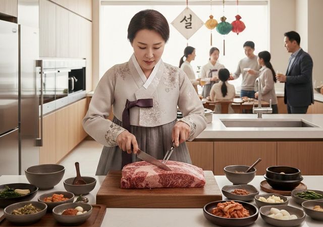 설 명절 음식을 차리기 위해 한우를 손질하려는 모습의 자료사진. AI가 생성한 자료사진.