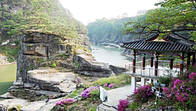 고석정은 자연 경관뿐 아니라 역사적 상상력을 자극하는 이야기로도 유명하다. 기록에 따르면 고석정의 누각은 서기 610년 신라 진평왕 시절 처음 세워졌다고 전해진다. 당시 진평왕이 고석바위 맞은편에 약 10평 규모의 2층 누각을 짓고 ‘고석정’이라 이름 붙인 뒤 여가를 즐겼다는 이야기가 남아 있다. 이후 조선 명종 시대인 서기 1560년 무렵에는 의적 임꺽정이 정자 건너편에 석성을 쌓고 이곳을 근거지로 삼아 활동했다는 전설도 전해 내려온다. 실제로 강 중앙에 자리한 기암봉에는 임꺽정이 몸을 숨겼다고 알려진 자연 동굴이 있고, 인근 산 정상부에는 과거의 흔적으로 보이는 석성이 일부 남아 있어 현장을 찾는 이들의 호기심을 더한다. 다만 원래의 누각은 한국전쟁 과정에서 소실되는 아픔을 겪었고, 1971년 복원 공사를 거친 뒤 1989년에 다시 한번 개축되며 현재의 모습을 갖추게 됐다.