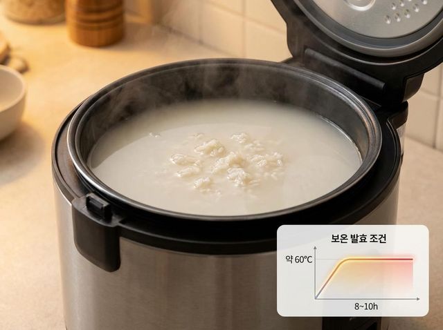 보온 상태로 8~10시간 정도 두면 변화가 나타난다. 밥알이 몇 알 위로 떠오르고, 국물에서 달큰한 향이 나기 시작하면 발효가 정상적으로 진행된 것이다. 이 단계에서 단맛을 더 키우기 위해 시간을 늘리면 국물이 탁해질 수 있어 주의가 필요하다.