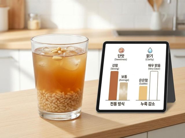 이 방식의 장점은 단맛이 과하지 않고 국물이 맑다는 점이다. 누룩을 과하게 쓰지 않으면 특유의 텁텁함이 줄고, 마셨을 때 부담이 적다. 실제로 누룩 양을 줄이면 발효는 충분히 진행되면서도 뒷맛이 깔끔하게 떨어진다. 명절에 여러 음식을 곁들여 마시기에도 적합하다.