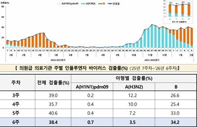 A형 검출은 감소한 반면 B형 검출은 7.6%포인트 증가하며 B형 중심의 유행 양상이 뚜렷해지고 있다.