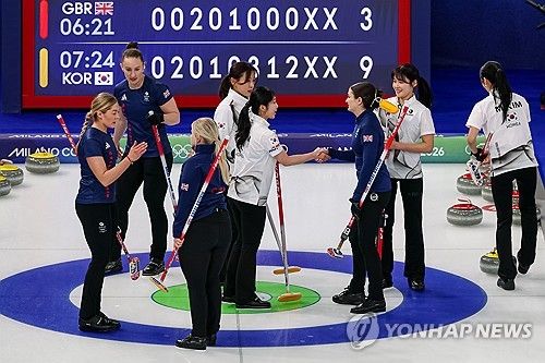 영국과 한국은 지난 13일 이탈리아 코르티나담페초 컬링 올림픽 스타디움에서 2026 밀라노·코르티나담페초 동계올림픽 여자 컬링 라운드로빈(예선) 3차전을 치렀다. 이날 경기는 한국의 9-3 완승으로 끝났다.