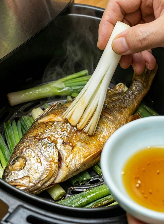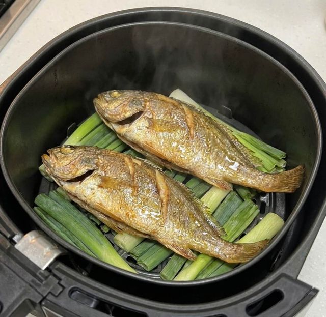 에어프라이에 대파 깔고 그 위에 조기 올리기. 기사 내용 토대로 AI툴 활용해 제작한 자료사진.