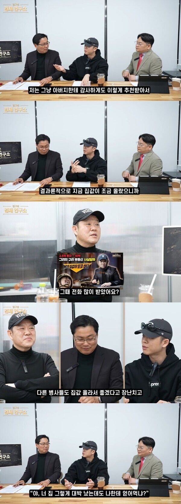 그리는 이 소식이 알려진 뒤 군 부대 내에서 겪었던 곤혹스러운 에피소드도 공개했다. 그는 100여 명의 간부가 있는 큰 부대에 근무 중인데, 30대 초반의 간부들이 어떻게 정보를 알고 샀냐며 엄청나게 물어봤다고 전했다. 또한 상급자들이 밥을 사줄 때도 집값이 대박 났는데 얻어먹느냐며 농담 섞인 한마디를 듣기도 했다고 말해 현장을 웃음바다로 만들었다.