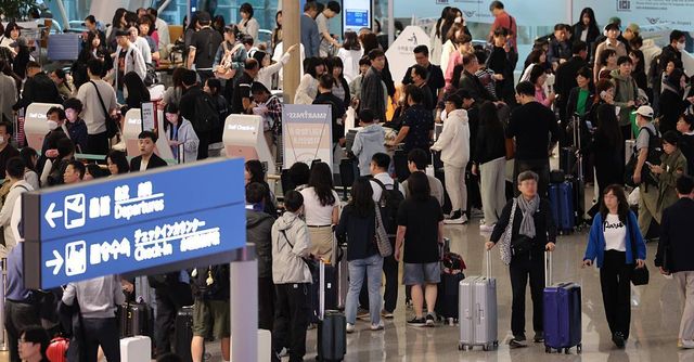 인천국제공항 제1여객터미널 출국장이 여행객들로 북적이고 있다 / 뉴스1