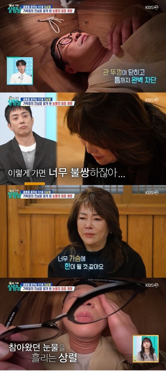14일 방송된 KBS 2TV '살림하는 남자들 시즌2'에서는 지상렬이 임종 체험을 하는 모습이 전파를 탔다.