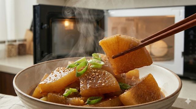 전자레인지를 활용한 무조림 요리 / AI 생성 이미지