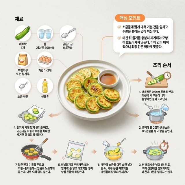 다음은 특별한 꿀팁이 담긴 애호박전 레시피 1장 요약본이다.