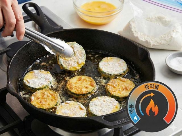 명절 상차림이나 집들이 반찬으로 자주 오르는 애호박전은 간단해 보이지만 막상 부치면 물이 많이 나오고 모양이 흐트러지기 쉽다. SNS, 유튜브 등에 올라온 꿀팁 정보들에 따르면 반찬가게에서 파는 애호박전이 유독 단단하고 모양이 정갈한 이유는 따로 있다. 팬에 올리기 전, '소금물에 짧게 데치는 과정'이다.