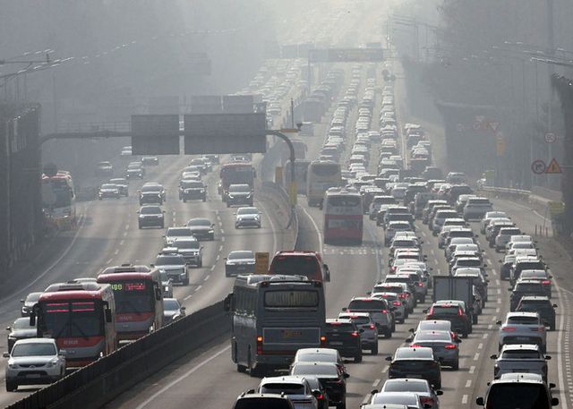 지난 15일 경부고속도로 서울 잠원 IC 인근이 서울을 빠져나가는 하행선 차량(오른편)으로 붐비고 있다. ⓒ 연합뉴스