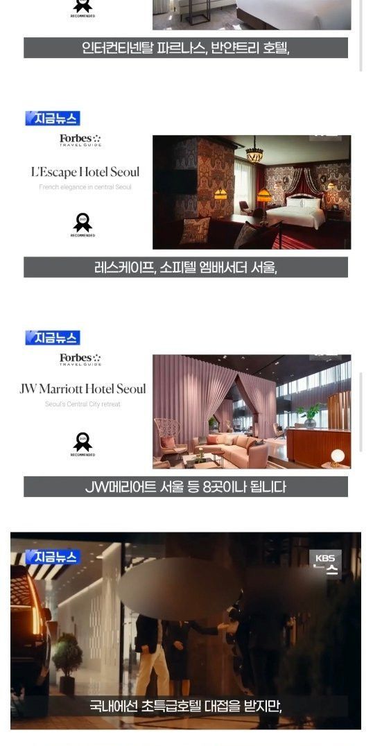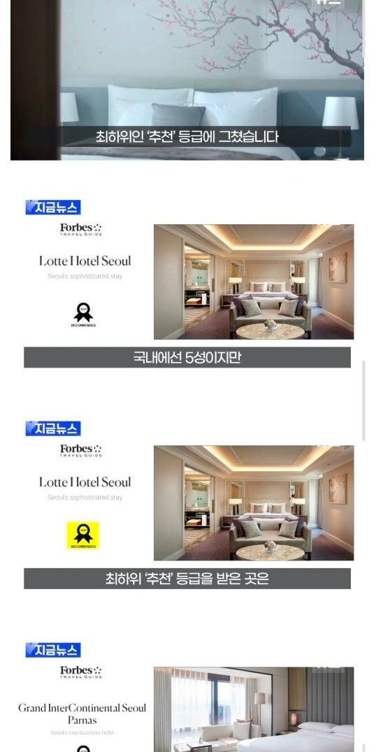 호텔판 미슐랭에서 개망신 당하는 한국 특급 호텔들