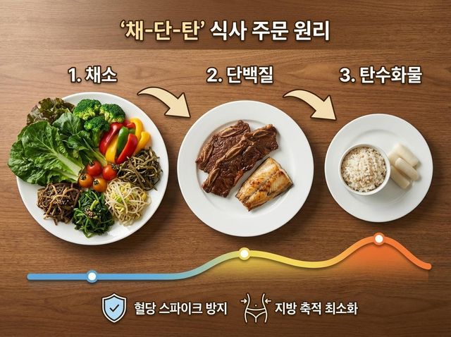 설날 음식을 참지 않고도 부담을 줄이는 방법은 분명하다. 무엇을 먹느냐보다 어떤 순서로 먹느냐가 명절 식사의 결과를 좌우한다. 채·단·탄 순서만 지켜도 같은 상차림에서 몸이 받는 부담은 크게 달라진다.