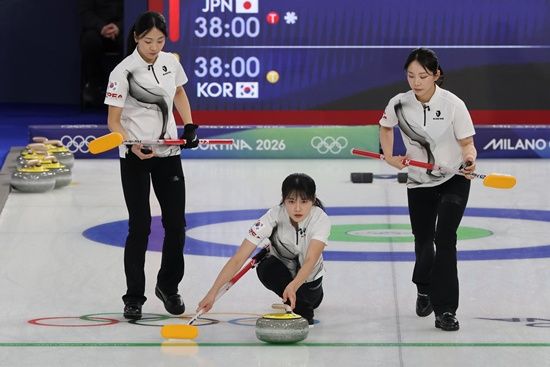 앞서 스킵 김은지, 서드 김민지, 세컨드 김수지, 리드 설예은, 핍스 설예지로 구성된 경기도청 팀은 16일(한국시간) 이탈리아 코르티나의 코르티나 컬링 스타디움에서 열린 2026 밀라노·코르티나 동계올림픽 일본과의 라운드로빈(예선) 5차전에서 일본을 7-5로 꺾었다.
