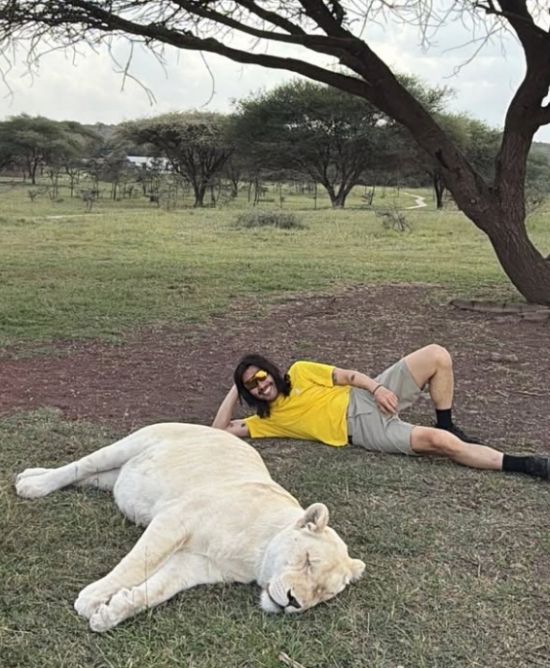 노홍철은 지난달 30일 아프리카 대륙 탄자니아에 위치한 한 쉼터에서 잠들어있는 암사자를 쓰다듬는 등 다양한 동물들과 교감하는 모습을 공개했다.
