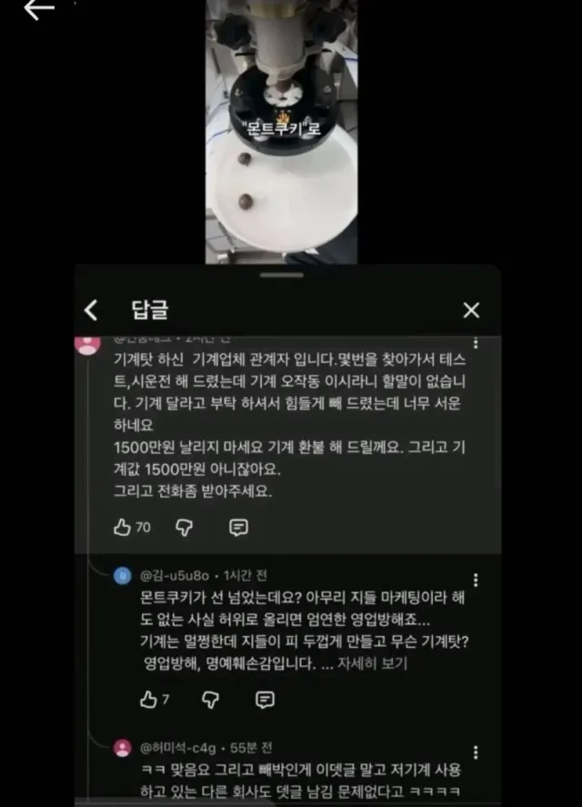 그러나 이에 기계 업체 반박이 올라옴