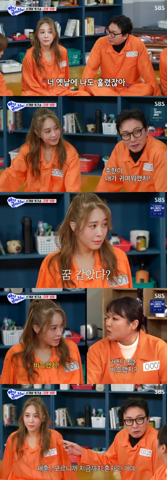 16일 방송된 SBS 새 예능 프로그램 '아니 근데 진짜!'에서는 옥주현이 출연해 4MC 탁재훈, 이상민, 이수지, 카이와 만났다.